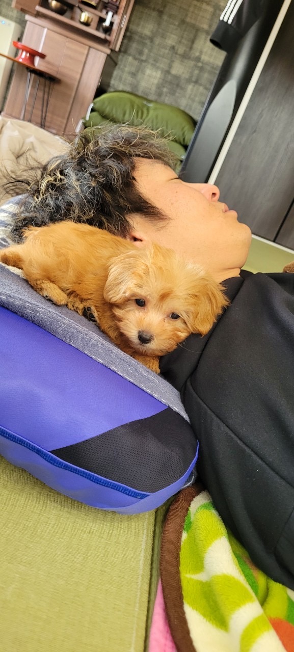 可愛い愛犬とお昼寝中の