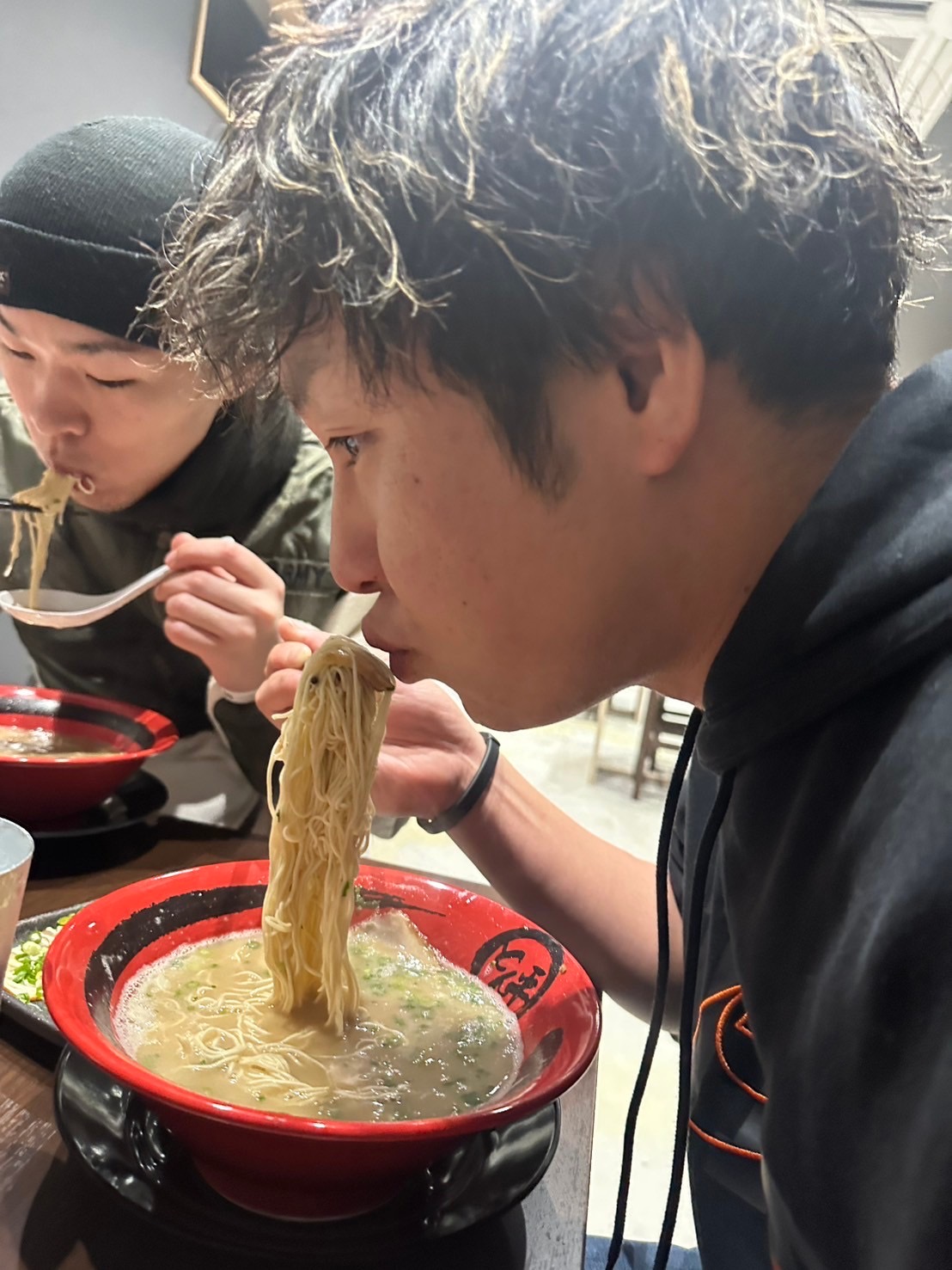 美味しいラーメンを食べている