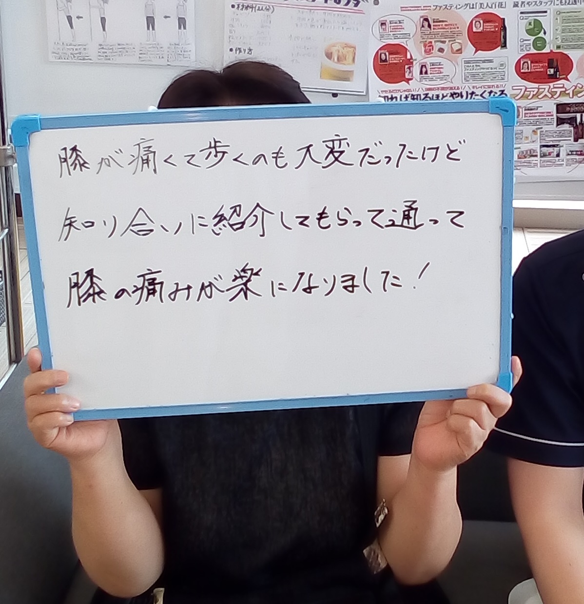膝が痛くて歩くのも大変だったけど 知り合いに紹介してもらって通って 膝の痛みが楽になりました! ※効果には個人差があります