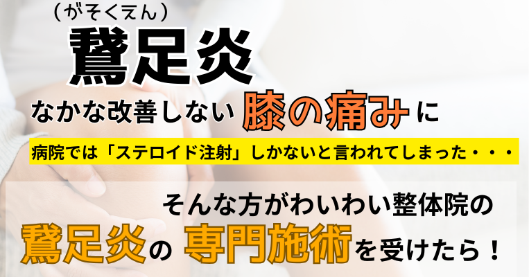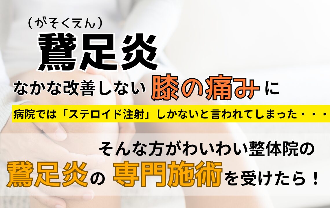 わいわい整体院では鵞足炎(がそくえん)の専門施術を行っています。